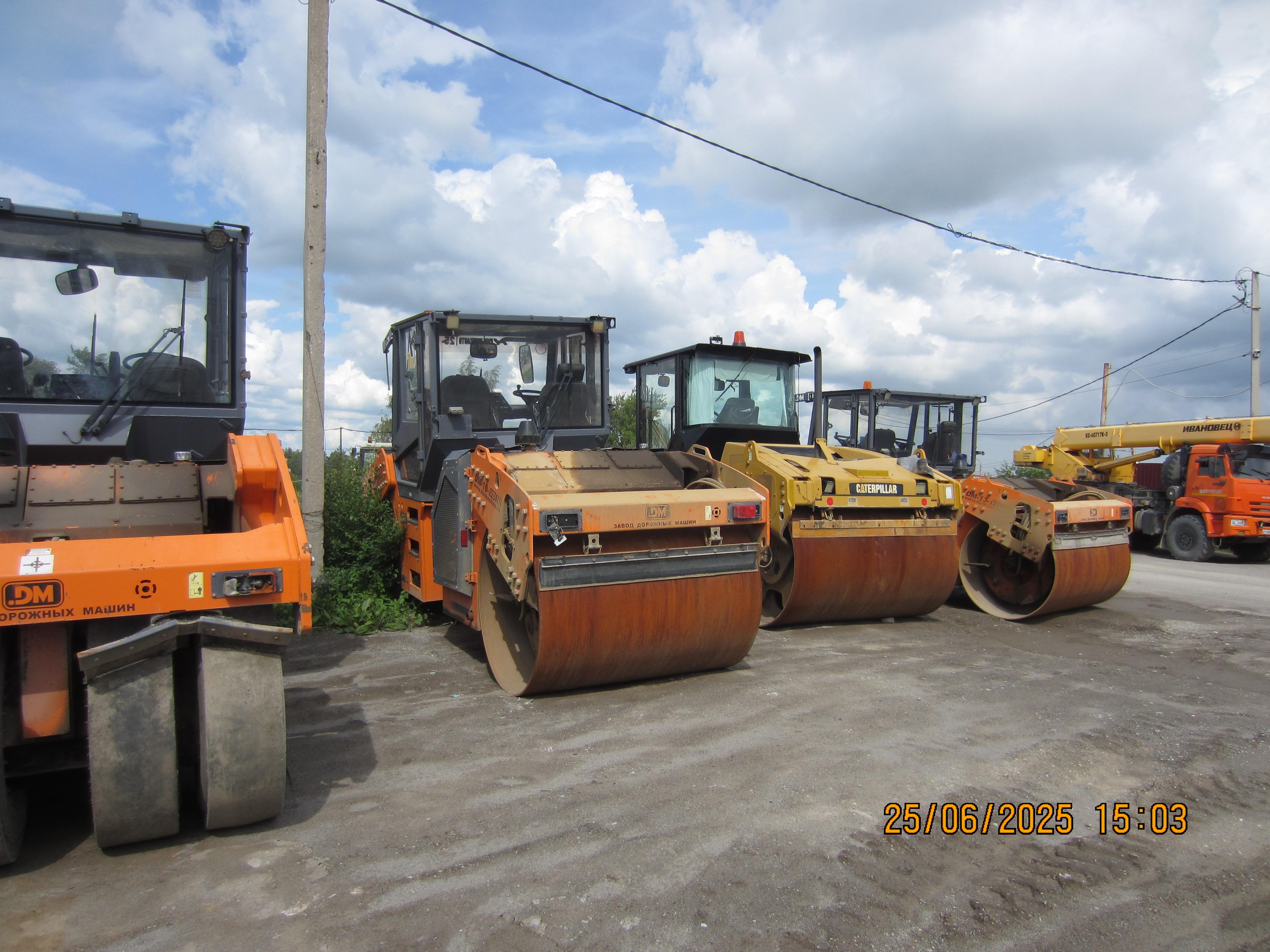 2020 г. Каток дорожный тандемный вибрационный самоходный DМ-10-VD предназначен для уплотнения песчаных и щебенистых грунтов, асфальто-бетонных смесей (АБС) при больших, средних и малых объемах работ по устройству покрытий и оснований на автомобильных, городских дорогах общего пользования. DM-10-VD Технические характеристики : Тип рамы Шарнирно-сочлененная Масса катка, конструктивная / эксплуатационная, т 10,05/ 10,6 Количество приводных вальцов 2 Количество вибрационных вальцов 2 Диаметр вальца, мм 1245 Ширина уплотняемой полосы, мм 1700 Статическая линейная нагрузка на ось, кг/см 31,2 Толщина обечайки вальца, мм 18 Скорость максимальная, км/ч 10,5 Наименьший радиус поворота по внутреннему следу, мм 4859 Преодолеваемый подъем на уплотненном покрытии, град./% 17/30 Тип трансмиссии Гидростатическая Двигатель ММЗ Д-245 / Cummins 4BTA3.9-C125 Мощность двигателя, кВт (л.с.) 77,0 (105,0) / 93 (125) Габаритные размеры (длина — ширина — высота),мм 4845 — 1850 — 2950 База, мм 3600 Клиренс, мм 350 Угол поворота +/-, град 35 Угол качания +/-, град 10 Режимы работы вибровозбудителя Режим 1 / Режим 2 Номинальная амплитуда колебания вальца, мм 0,7 / 0,35 Частота колебаний вальца, Гц 45 / 55 Центробежная сила вибровозбудителя, кН 110 / 80 Топливный бак, л 120 Гидравлический бак, л 60 Водяной бак, л 500 Система подачи воды: Тип под давлением Количество насосов 2 Количество форсунок 8 Электрооборудование, В 24