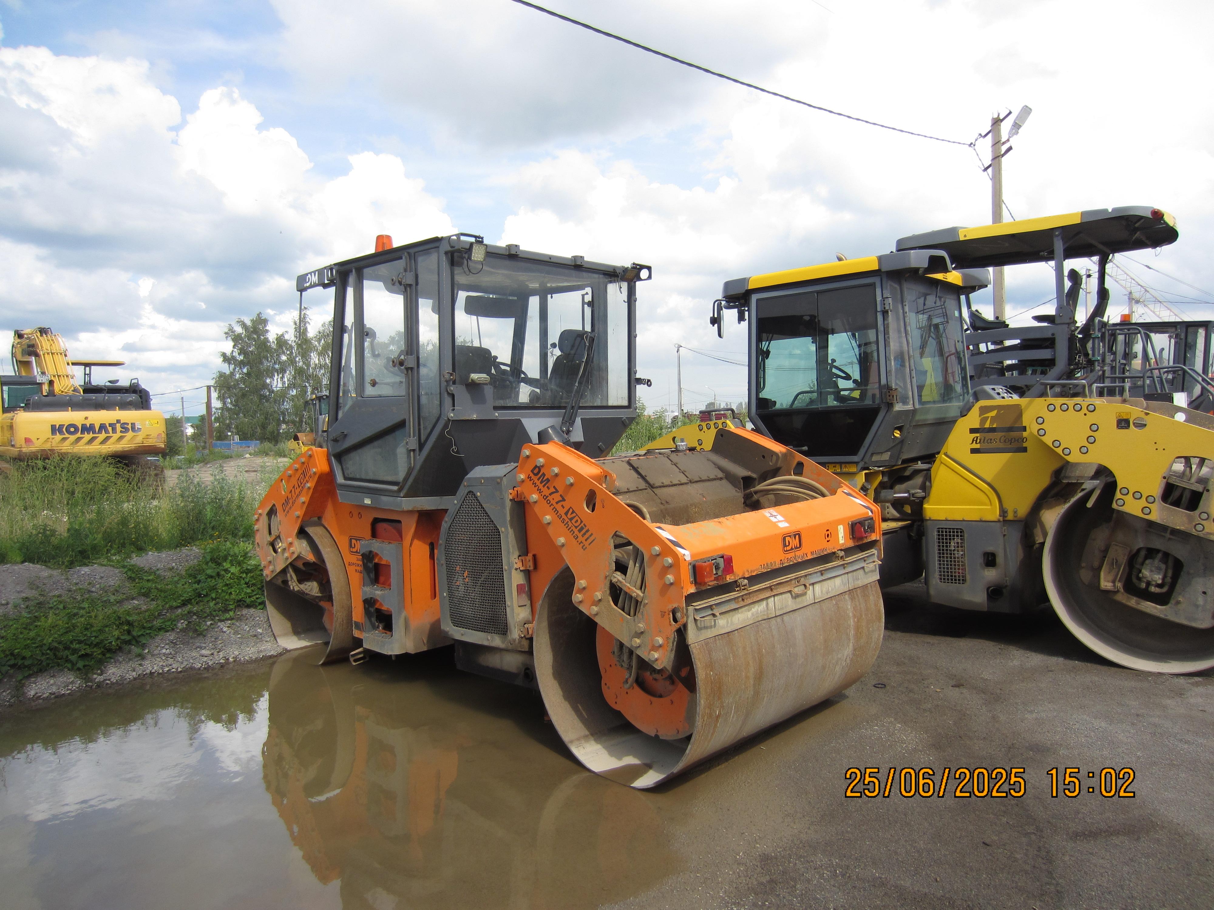 2020 г. Каток дорожный двухвальцовый вибрационный самоходный DМ-7.7-VD предназначен для уплотнения песчаных и щебенистых грунтов при больших, средних и малых объемах работ по устройству покрытий и оснований на автомобильных, городских дорогах общего пользования. DM-7.7-VD Технические характеристики : Тип рамы шарнирно-сочлененная Масса катка, конструктивная / эксплуатационная, т 7,5 / 7,95 Количество приводных вальцов, шт 2 Количество вибрационных вальцов, шт 2 Диаметр вальца, мм 1140 Ширина уплотняемой полосы, мм 1700 Статическая линейная нагрузка на ось, кг/см 23,3 Толщина обечайки вальца, мм 18 Скорость максимальная , км/ч 12 Наименьший радиус поворота по внутреннему следу, мм 4462 Преодолеваемый подъем на уплотненном покрытии, град 17/30 Тип трансмиссии гидростатическая Двигатель ММЗ Д-243 Мощность двигателя, кВт (л.с.) 57,4 (78,0) Габаритные размеры (длина — ширина — высота), мм 4845 — 2150 — 2950 База, мм 3600 Клиренс, мм 350 Угол поворота +/-, град 35 Угол качания +/-, град 10 Режимы работы вибровозбудителя Режим 1 / Режим 2 Номинальная амплитуда колебаний вальца, мм 0,67 / 0,36 Частота колебаний вальца, Гц 45 / 55 Центробежная сила вибровозбудителя, кН 77 / 63 Топливный бак, л 150 Гидравлический бак, л 60 Водяной бак, л 600 Система подачи воды: Тип под давлением Количество насосов 2 Количество форсунок 8 Электрооборудование, В 24