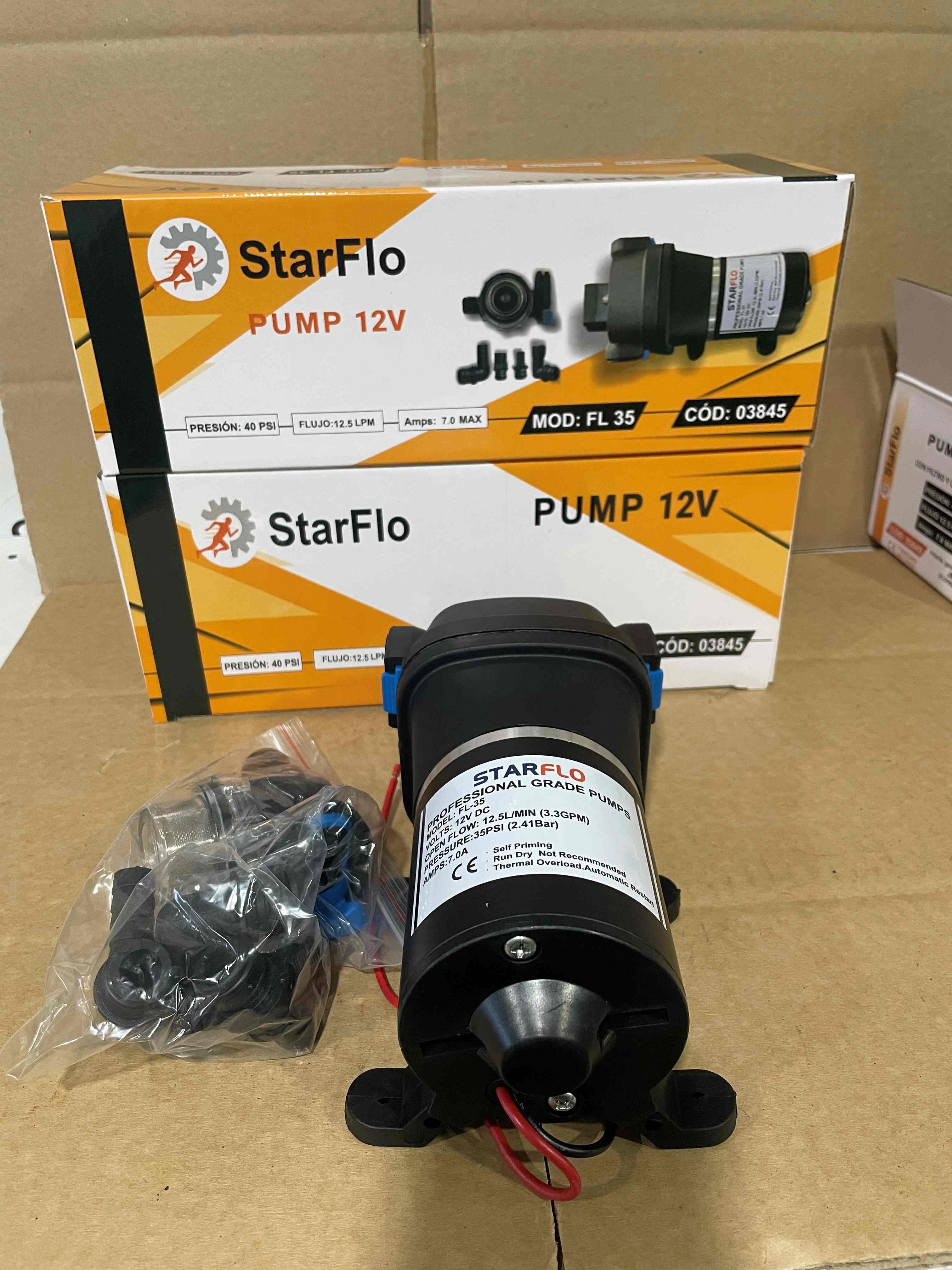 Насос орошения StarFlo 12 вольт используется в системе смачивания на дорожных катках Bomag, Hamm, Dynapa, RV, Раскат и многих других. Аналогичный с насосами фирм Shurflo и Flojet Основные технические характеристика: Напряжение: 12v Производительность: 12.5L/min Давление: 2.41 bar